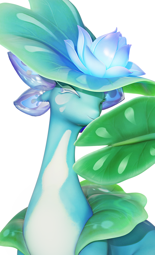 与莲花为伴,栖身于莲叶之间,习惯性使用拟态莲叶的尾部来遮挡面容,以显示其矜持高雅的行为风格。